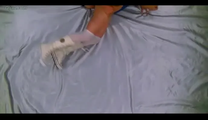 Watch two Asian girls engage in intense wrestling match, wearing red and blue swimsuits and white stockings, in a dimly lit indoor setting.