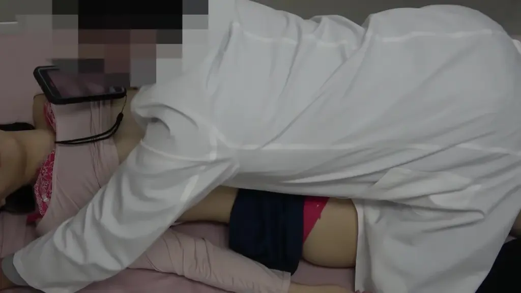 Watch a young Asian woman undergo a gynecological examination by an older man in a medical office, captured in explicit detail