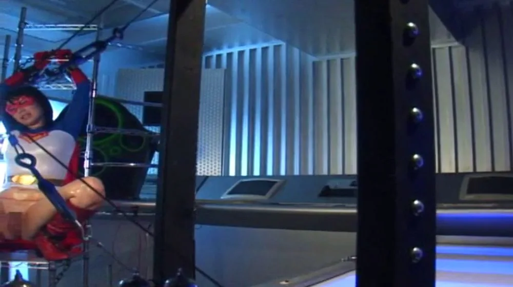 Watch an Asian performer in a Superman costume indulge in an industrial fetish scene with chains and metallic structures