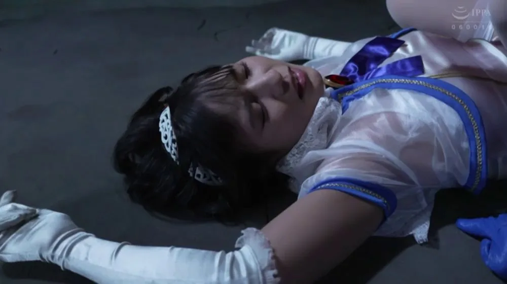 Slim Asian performers in white dresses and lingerie engage in intimate moments in a dimly lit setting
