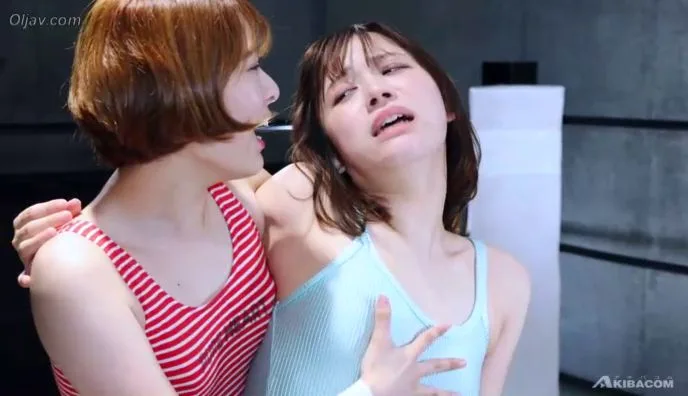 Explore the intense intimacy and domination between two Asian women in a dimly lit setting, featuring restraint and sensual contact.