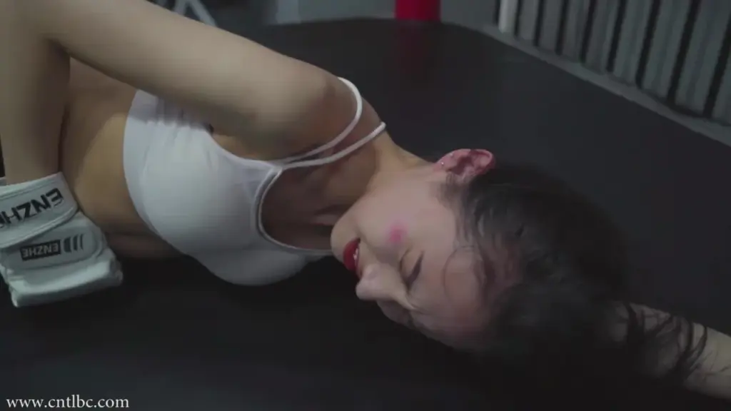 Watch two Asian women engage in intimate and aggressive interactions in a boxing ring, wearing sports bras and boxing gloves.