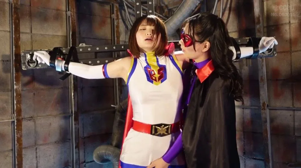 Watch two Asian women in an industrial setting, embracing and kissing, one wearing a red mask and holding a gun.