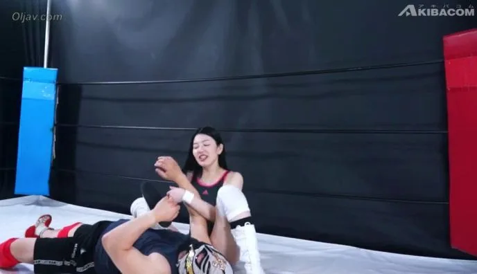 Watch two slim Asian lesbians in their 20s with black straight hair engage in a intense wrestling match wearing wrestling attire and masks in a ring.