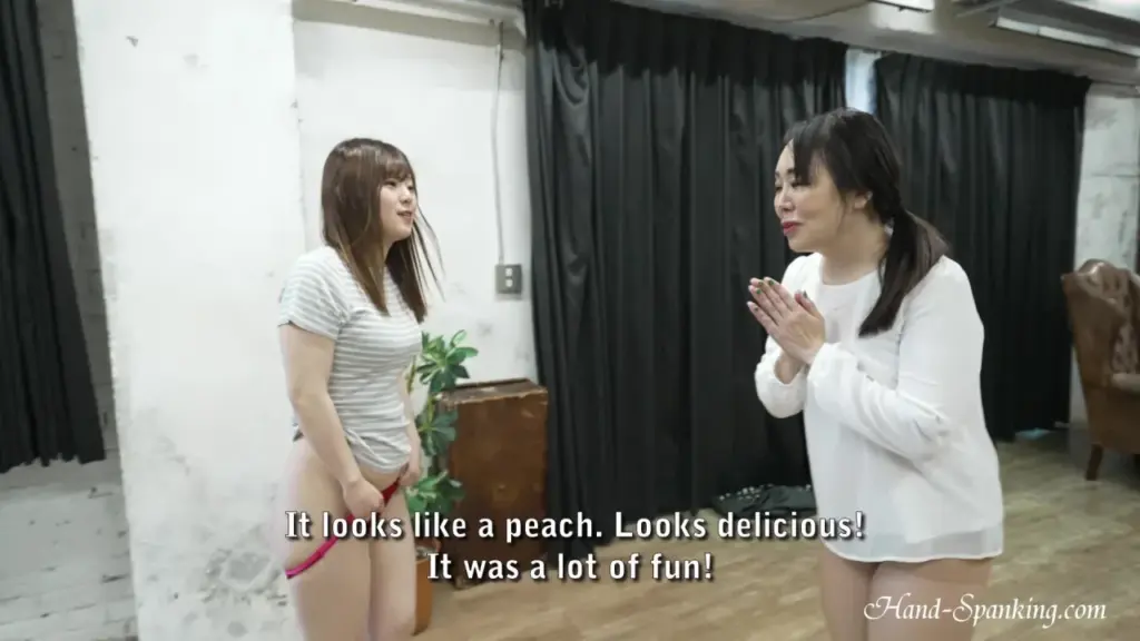Watch two Asian women engage in spanking and intimate interactions in a naturally lit room, followed by a solo scene with a woman in floral panties.
