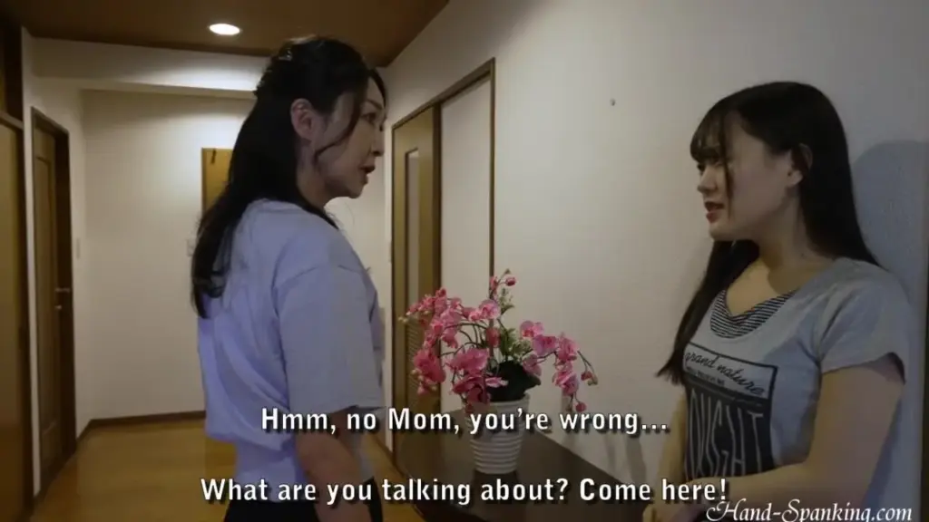Watch two Asian women engage in a sensual spanking session in a cozy bedroom setting, featuring natural and artificial lighting.
