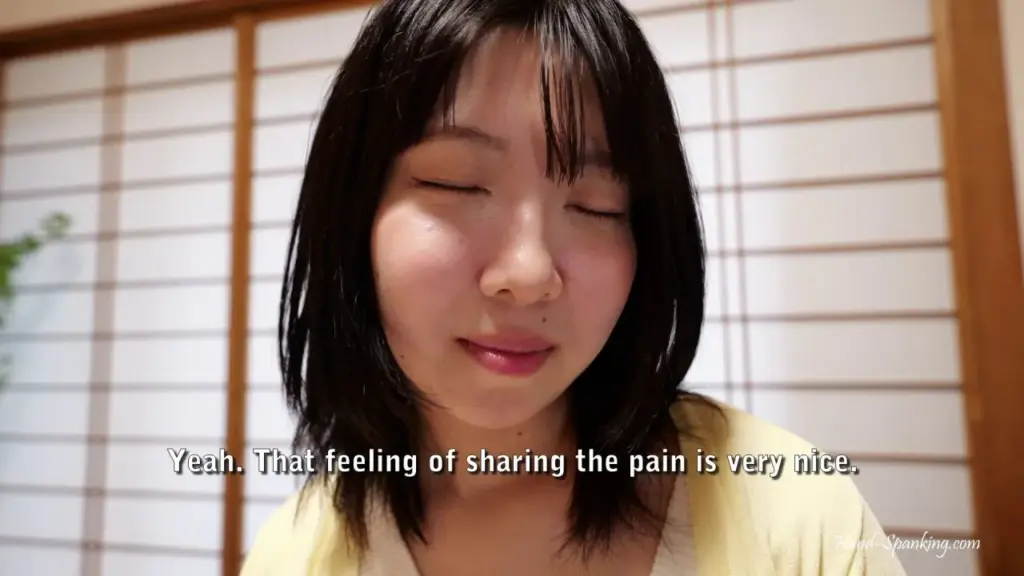 Watch two Asian women engage in a spanking session in a soft-lit bedroom with shoji screen.