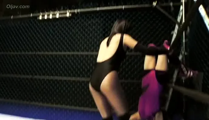 Watch two Asian lesbians engage in intense wrestling match in a cage with ropes and chain link fence