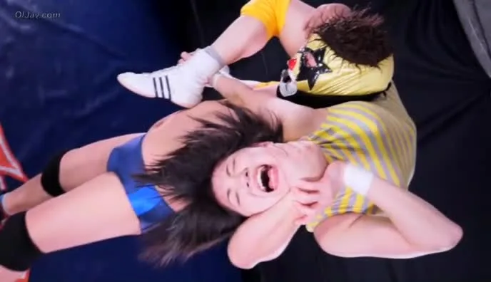 Watch two Asian women engage in intense wrestling match, grappling and face grabbing in various leotards and athletic wear