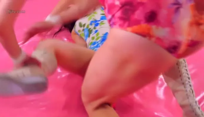 Watch two Asian women engage in intense wrestling match in a ring with dramatic lighting and varied camera angles