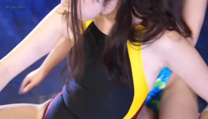 Watch two Asian women engage in intense wrestling matches in swimsuits, filmed with varied camera angles and shots.