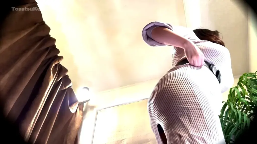 Watch an Asian model pose in lingerie and undress in a bathroom setting with warm lighting and POV shots