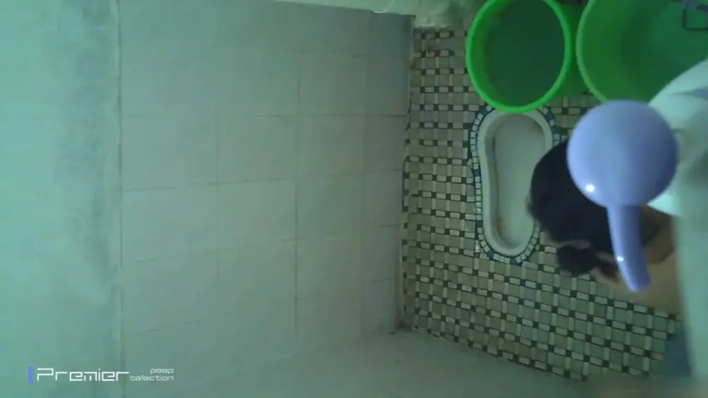 Watch an Asian man in his 20s showering and bending down in a bathroom with artificial lighting
