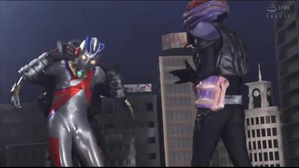 Watch Asian men engage in intense costumed combat in a cityscape, followed by a disturbing scene in an ambulance