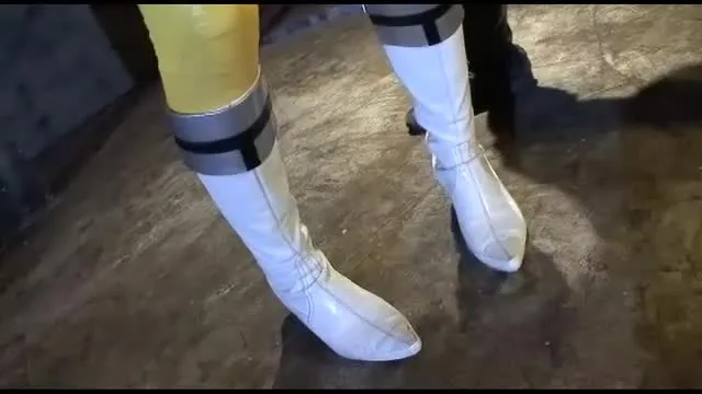 Watch an Asian model in a metallic costume pose and perform in an industrial warehouse setting, featuring dramatic lighting and close-up shots.