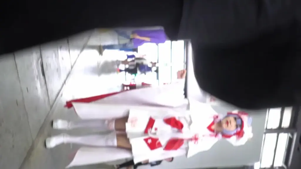 Watch Asian models in dresses interact in a convention center setting. Discover more exclusive content.