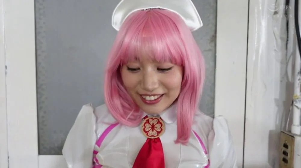 Watch a sensual Asian nurse cosplay scene with explicit content, featuring a slender performer in a nurse hat and red tie
