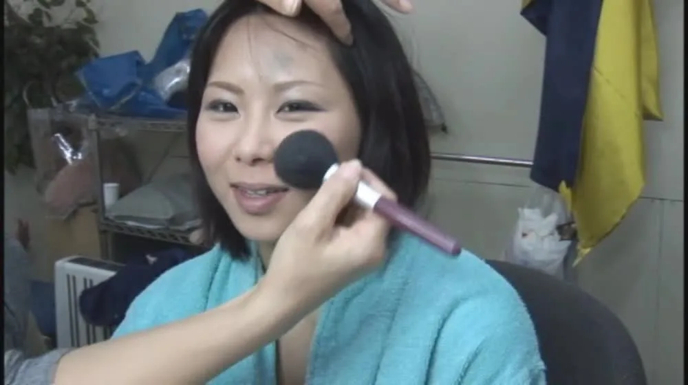 Watch an Asian performer in a blue costume and mask, getting ready backstage and on set in a dramatic production