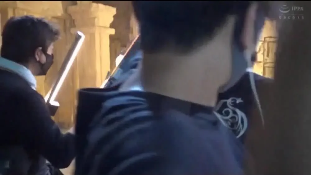 Watch Asian performers in revealing outfits and masks engage in explicit scenes outdoors and in a temple setting