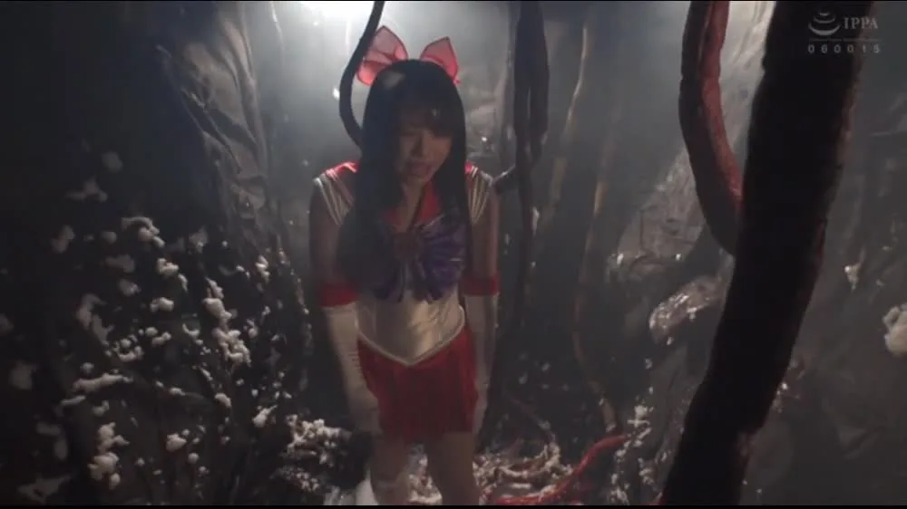 Watch a slim Asian woman in Sailor Moon costume engage in intimate acts in a dark room with tentacles or vines, captured in close-up and high angle shots