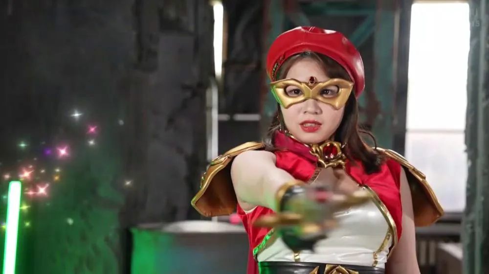 Watch a young Asian woman in a red and white costume and gold mask, engaging in sensual poses with a staff, and other explicit scenes with Asian performers.