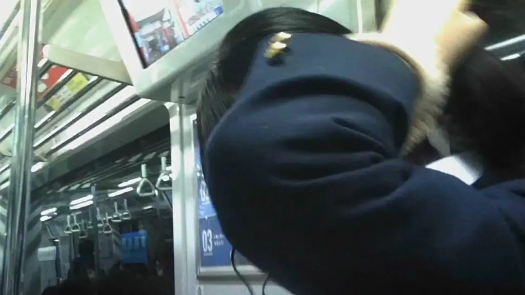 Experience the thrill of a provocative Asian schoolgirl in a subway setting, wearing a short plaid skirt and uniform.