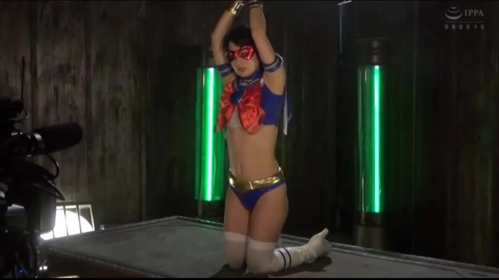 Watch an Asian woman in a superhero costume being restrained in an industrial setting with a male partner.