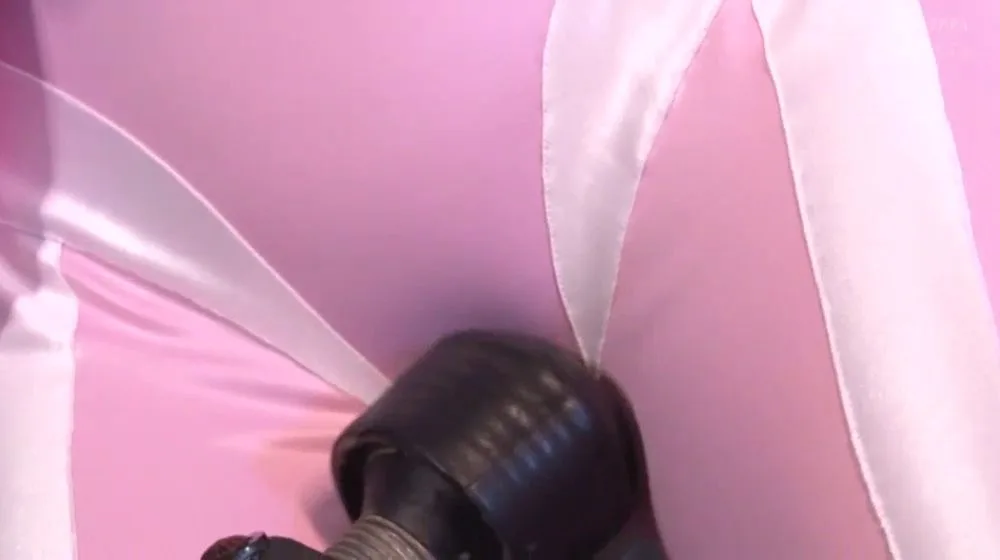Watch an Asian couple in a pink superhero costume engage in intimate moments in an industrial setting.