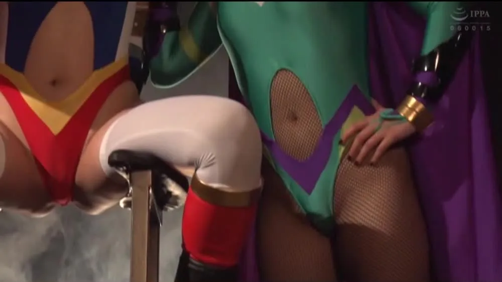 Witness the intense bondage encounter between an Asian superheroine and military personnel in a dark, mysterious setting.