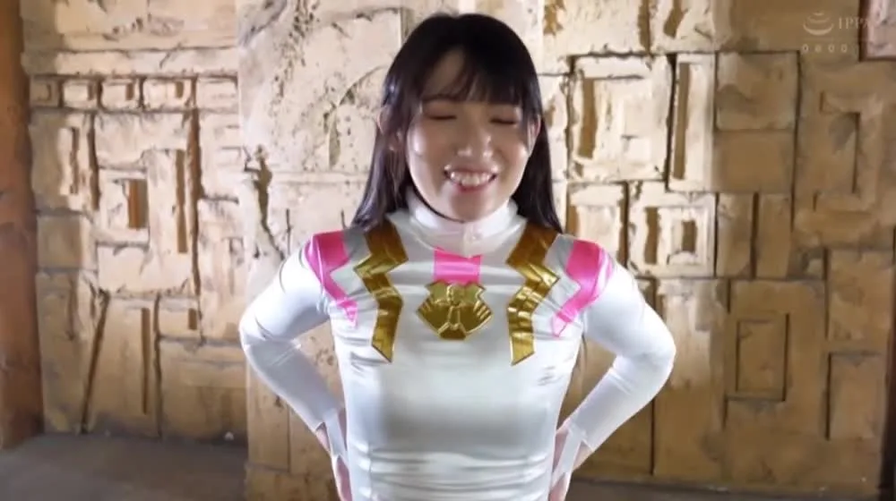 Explore a fantastical world with a young Asian woman in cosplay, transforming into a silver robot or alien, in an ancient indoor setting.