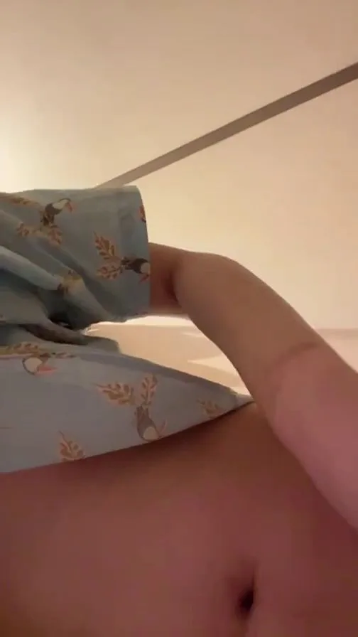Watch an Asian girl undress and touch herself in a bedroom after a public moment on the street.