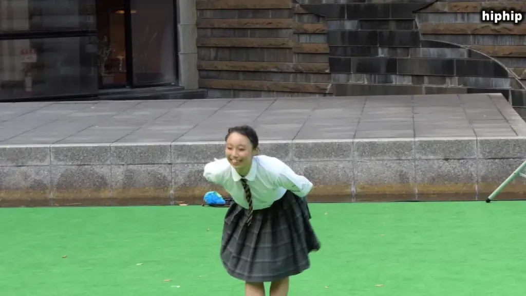 Watch young Asian girls in colorful skirts dancing outdoors on green turf, energetic and playful moments captured in close-up shots.