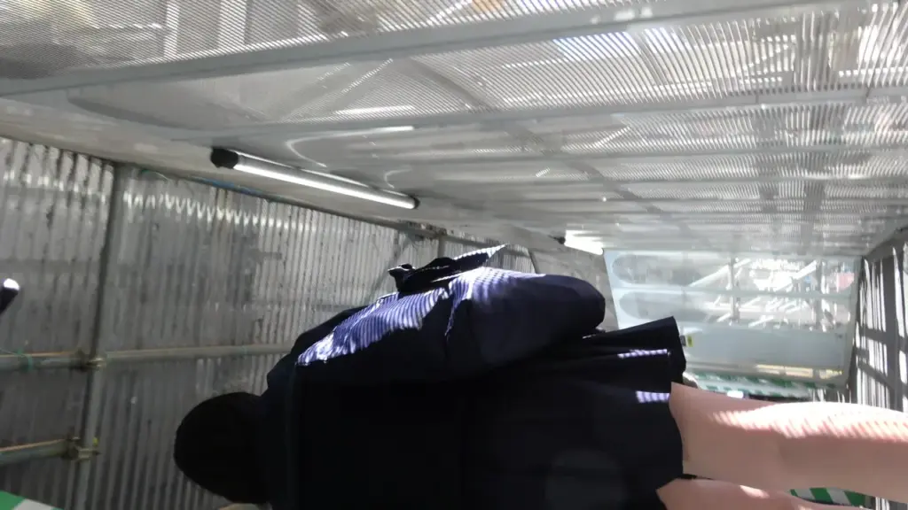 Watch a slim Asian teen in a dark blue jacket seduce in an office and industrial setting
