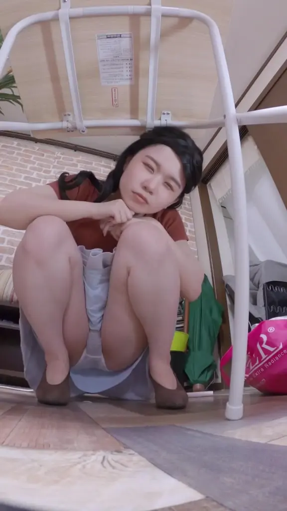 Watch an Asian woman in her 20s lift her skirt and sit with legs spread...