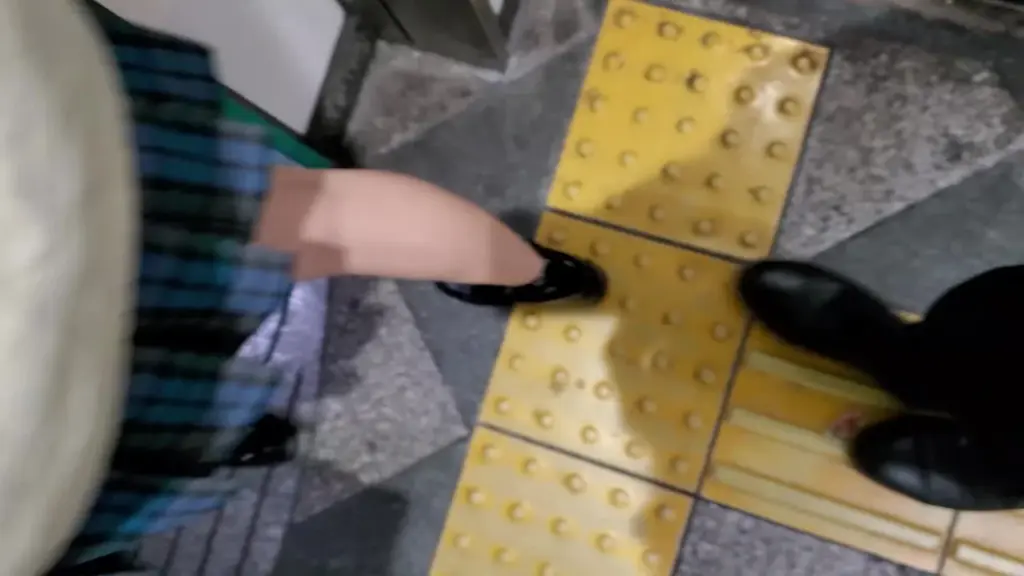Watch an Asian teen in a plaid skirt and black boots in a subway station scenario