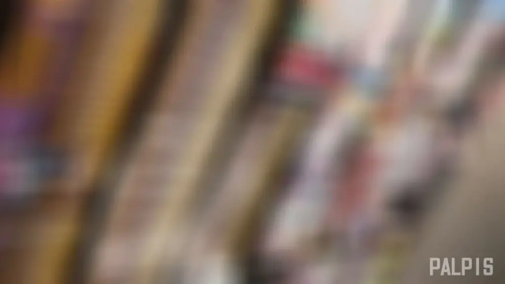 Watch an Asian girl with black hair and tattoo on ankle posing in a skirt in a DVD store with fluorescent lighting