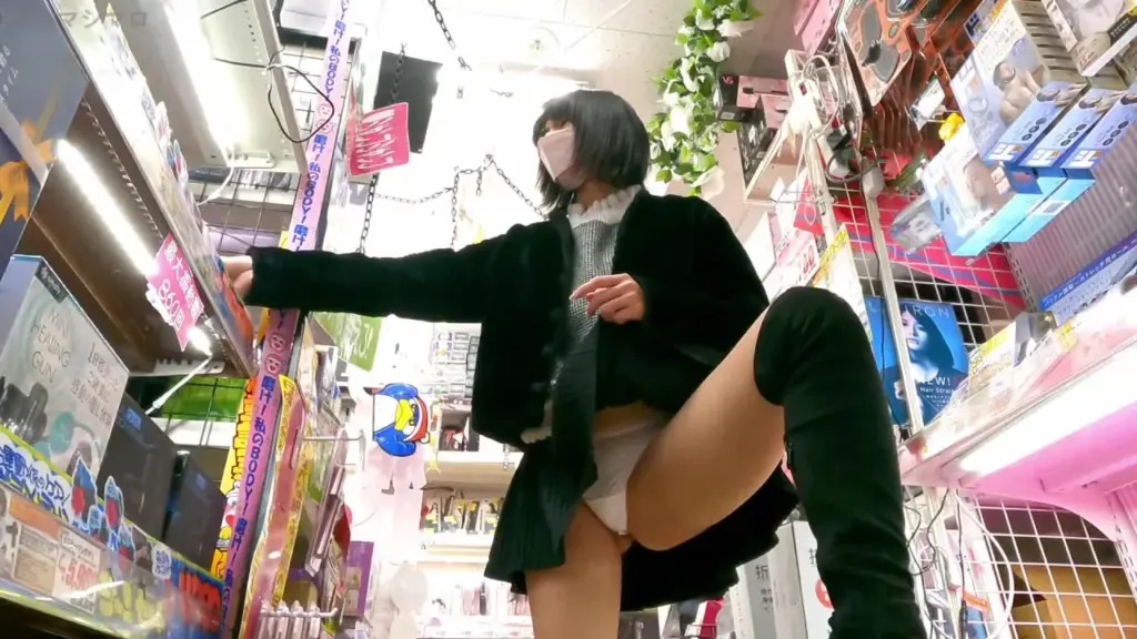 Watch a slim Asian girl in her 20s with short black hair in a series of steamy scenes in a store aisle.