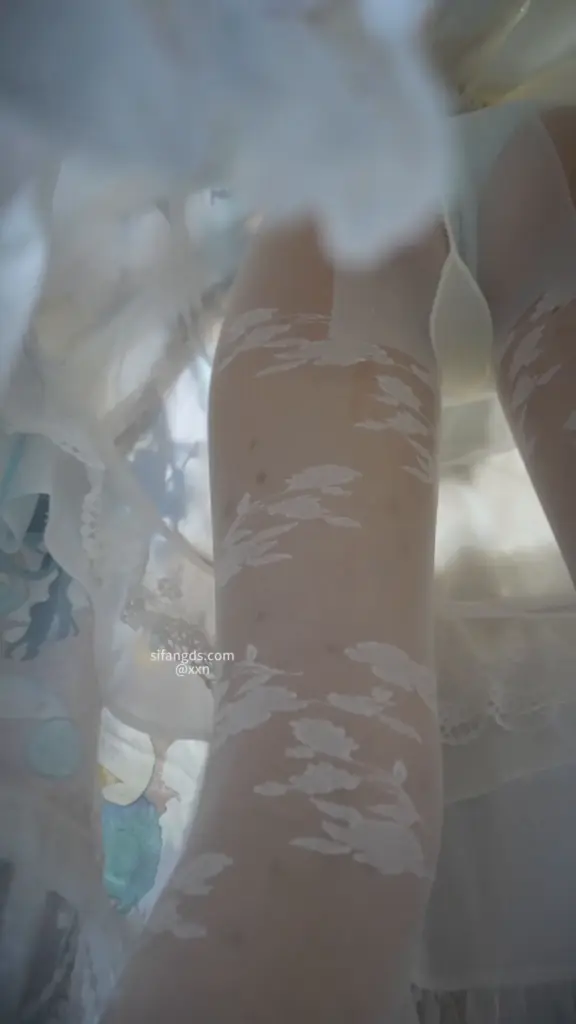 Watch a slim Asian woman in her 20s seduce in white lingerie and stockings in a bedroom setting with natural light.