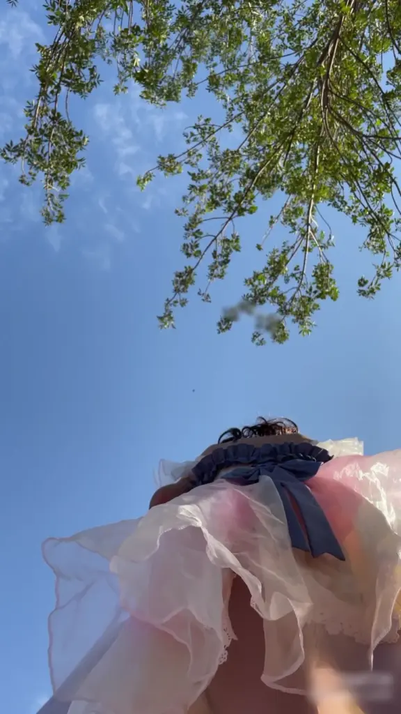 Watch a stunning Asian teen in her 20s tease in white tights and red shoes outdoors under natural sunlight.