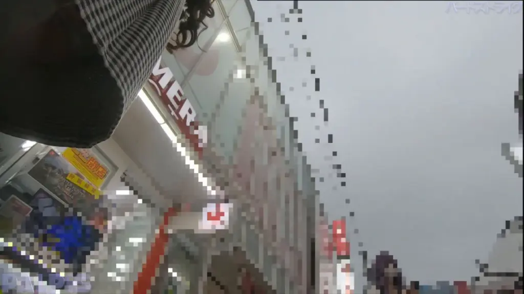 Watch as a slim Asian teen with long black hair lifts her skirt on a busy city street in this POV video