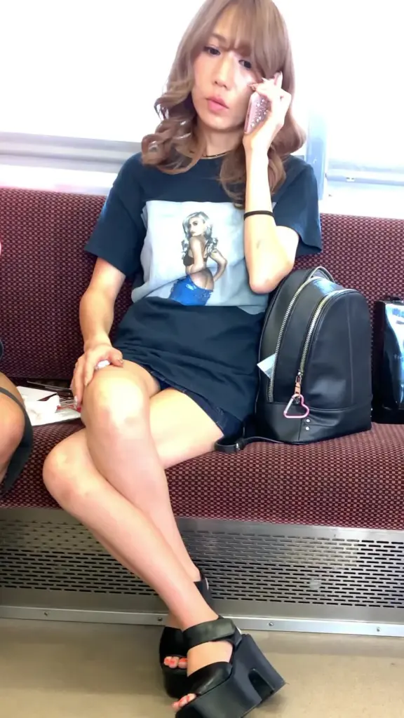 Watch an Asian woman in her 20s lift her skirt and sit with legs spread...