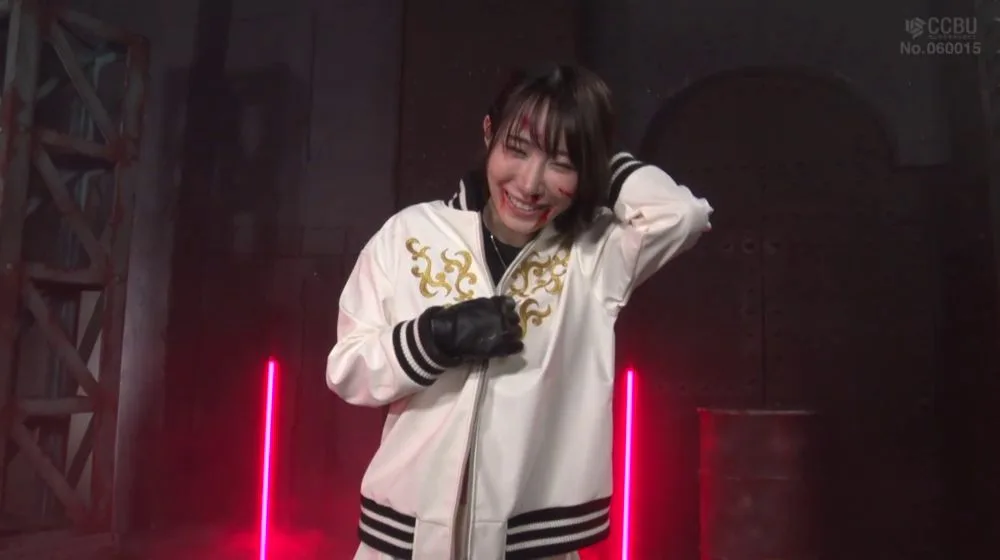 Watch an Asian performer in her 20s with long straight hair and bangs take center stage, wielding a sword under neon lights
