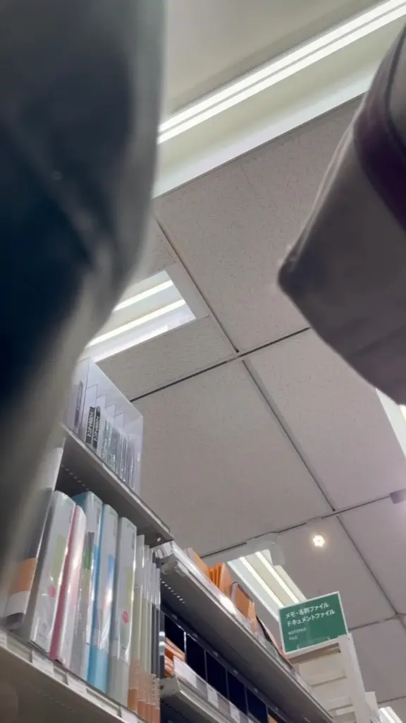 Watch a slim Asian teen with long brown hair shopping in a store, captured in POV and high angle shots