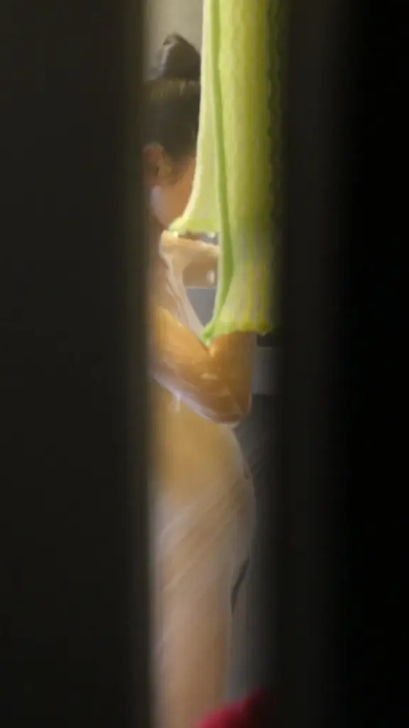 Watch a slim Asian girl undress in a bedroom with natural light in this close-up POV video.