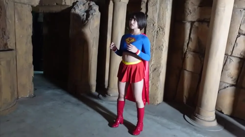Witness the allure of an Asian beauty in an ancient temple setting, with dramatic poses and sensual moments.
