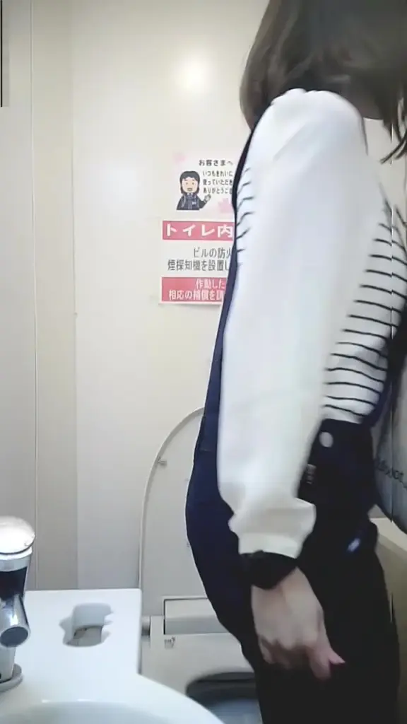 Watch intimate moments of Asian performers urinating and getting ready in a bathroom setting, captured in POV style