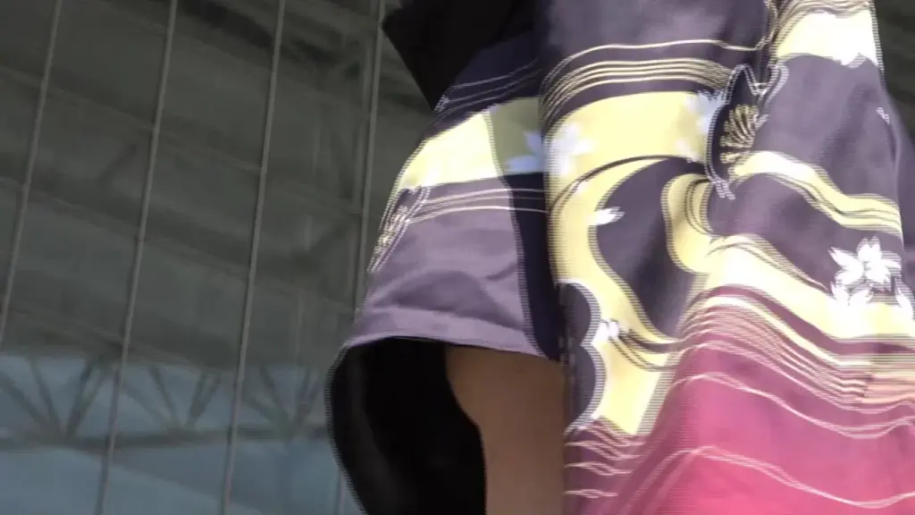 Watch an Asian woman in her 20s with black bob hair posing and dancing outdoors in traditional Japanese clothing