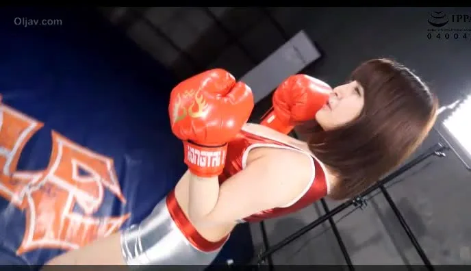 Watch two Asian women engage in a fierce boxing match, wearing boxing gloves and posing in the ring.