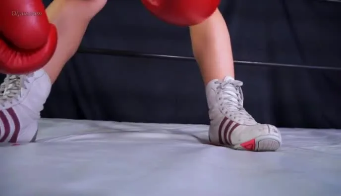 Watch two slim Asian women with black hair in a steamy boxing ring encounter