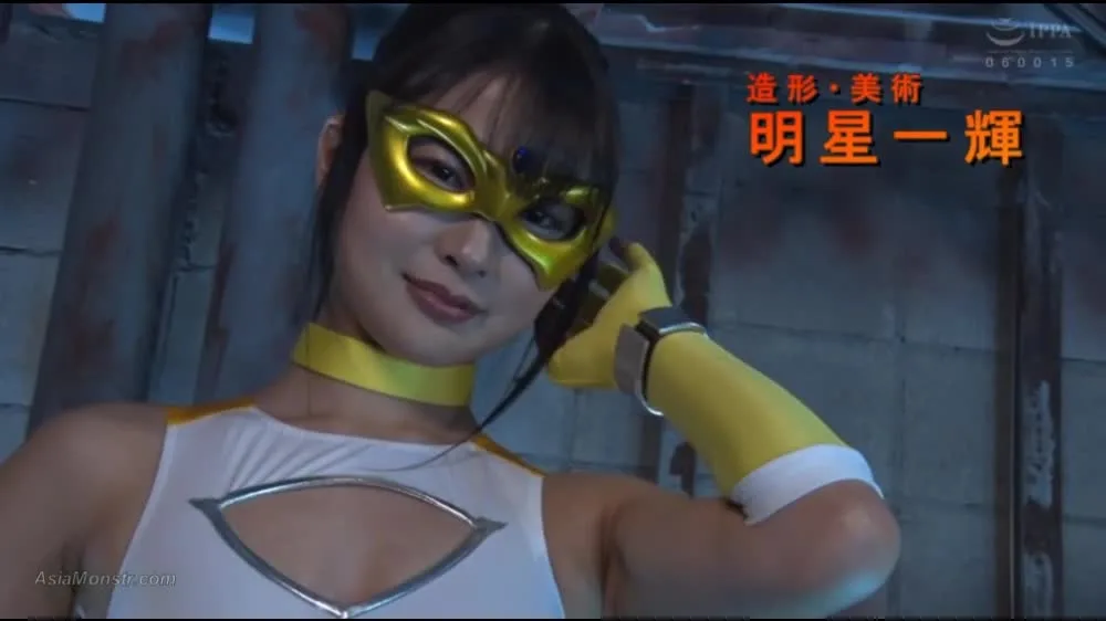 Watch two Asian women in their 20s, wearing gold masks and costumes, engage in restrained and intimate moments in an industrial setting.